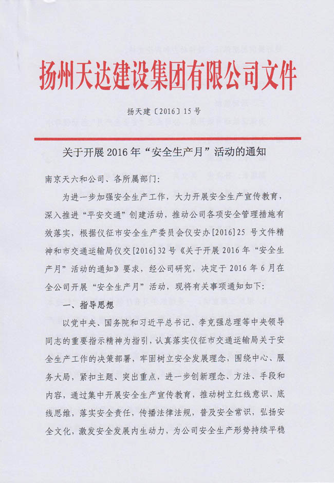 關(guān)于開展2016年“安全生產(chǎn)月”活動(dòng)的通知
