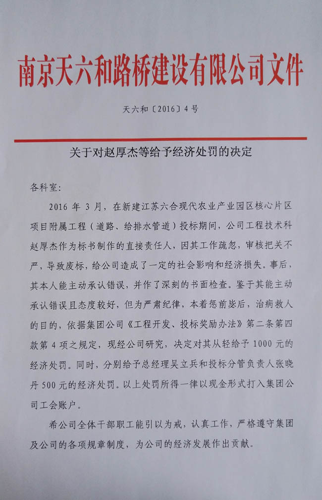 關于對趙厚杰等給予經(jīng)濟處罰的決定