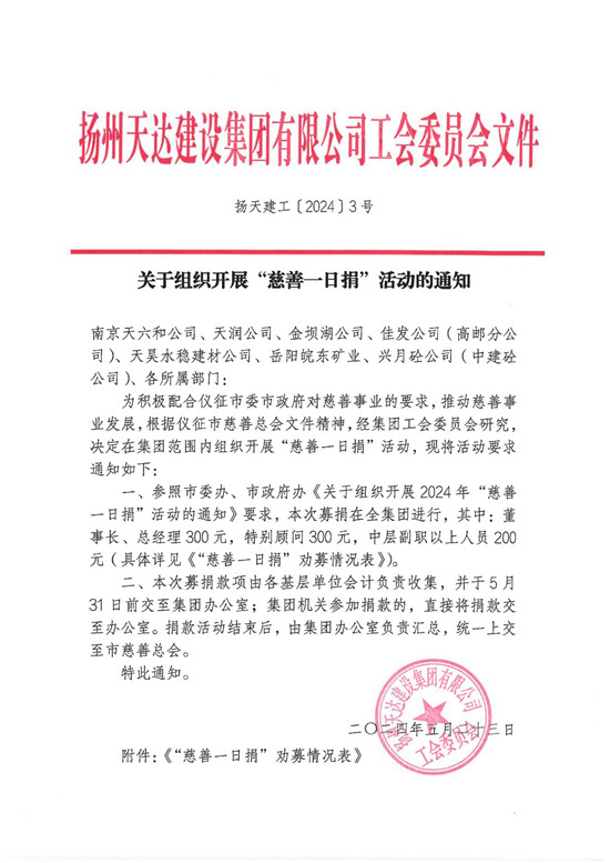 關(guān)于組織開(kāi)展2024年“慈善一日捐”活動(dòng)的通知