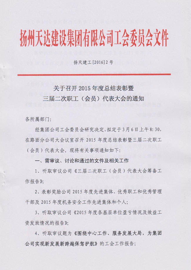 關(guān)于召開(kāi)2015年度總結(jié)表彰暨三屆二次職工(會(huì)員)代表大會(huì)的通知