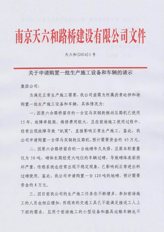 關于申請購置一批生產(chǎn)施工設備和車輛的請示
