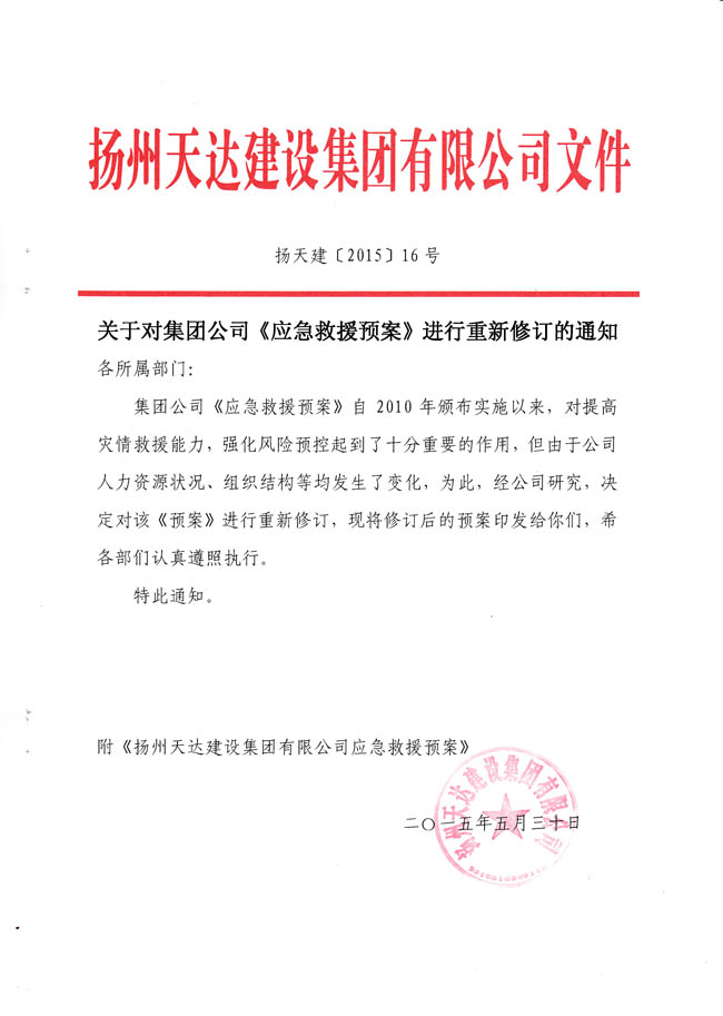關(guān)于對(duì)集團(tuán)公司《應(yīng)急救援預(yù)案》進(jìn)行重新修訂的通知