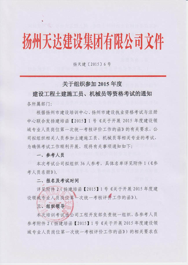 關(guān)于組織參加2015年度建設(shè)工程土建施工員、機(jī)械員等資格考試的通知