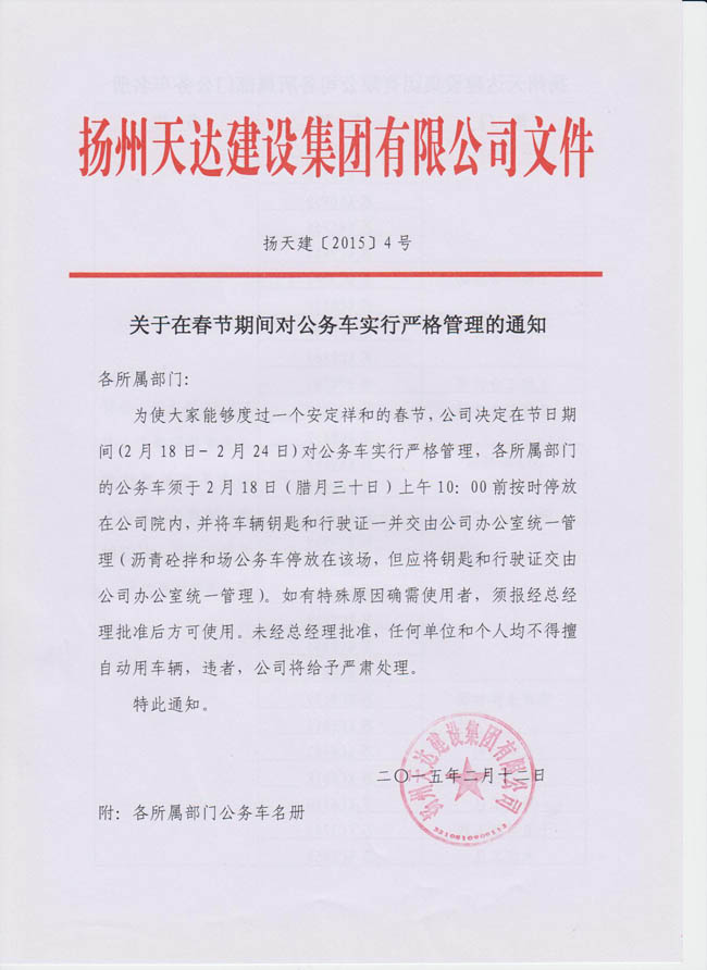 關于在春節(jié)期間對公務車實行嚴格管理的通知