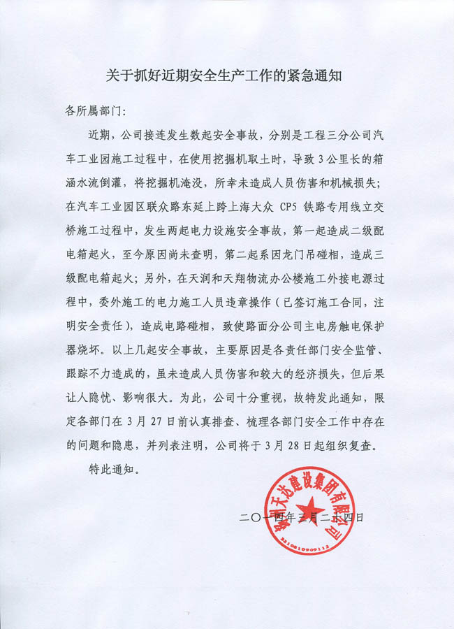 關(guān)于抓好近期安全生產(chǎn)工作的緊急通知