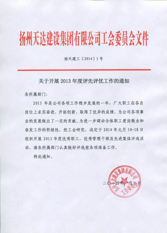 關(guān)于開展2013年度評先評優(yōu)工作的通知