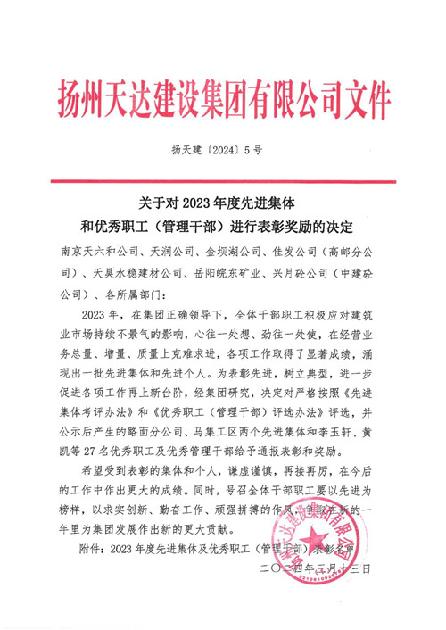 關(guān)于對2023年度先進(jìn)集體和優(yōu)秀職工(管理干部)進(jìn)行表彰獎勵的決定