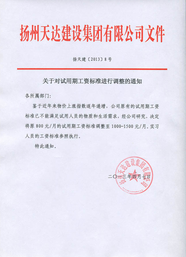 關(guān)于對試用期工資標(biāo)準(zhǔn)進(jìn)行調(diào)整的通知