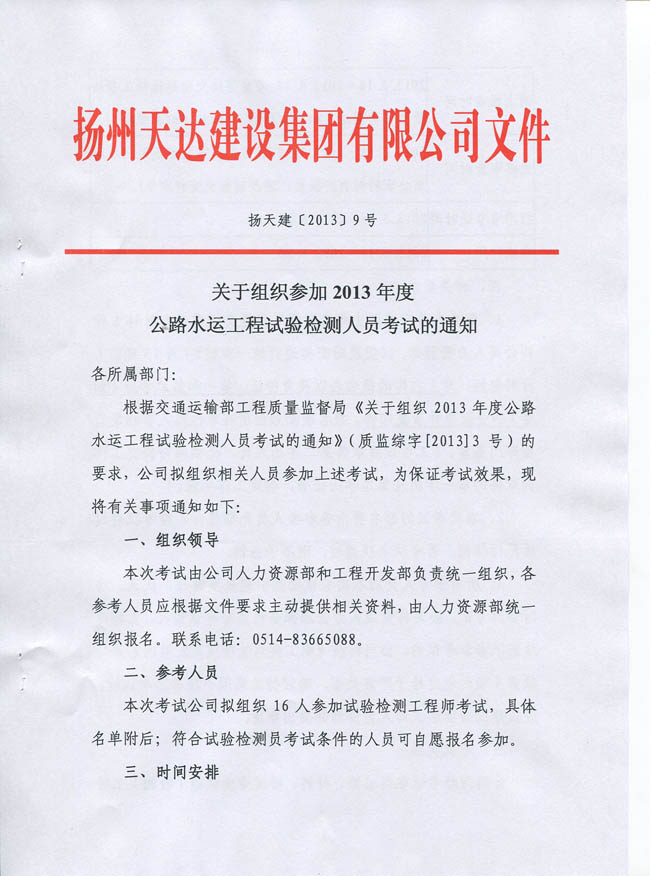 關(guān)于組織參加2013年度公路水運(yùn)工程試驗(yàn)檢測人員考試的通知