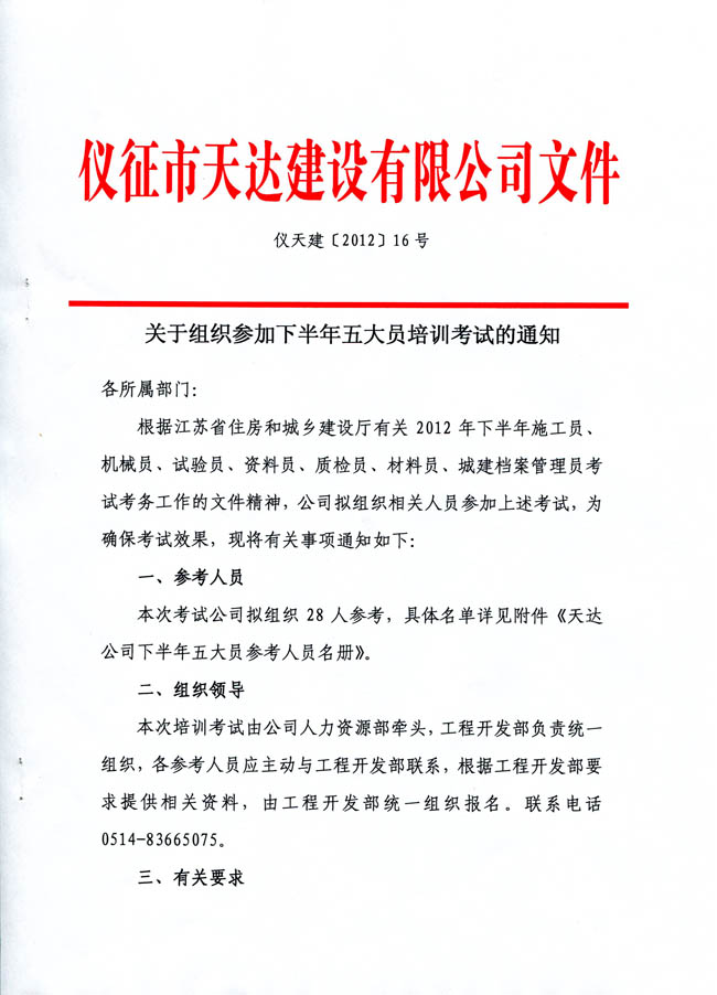 關(guān)于組織參加下半年五大員培訓(xùn)考試的通知