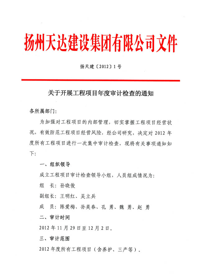 關(guān)于開(kāi)展工程項(xiàng)目年度審計(jì)檢查的通知