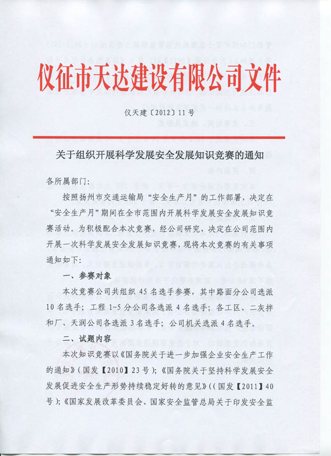 關(guān)于組織開展科學(xué)發(fā)展安全發(fā)展知識競賽的通知