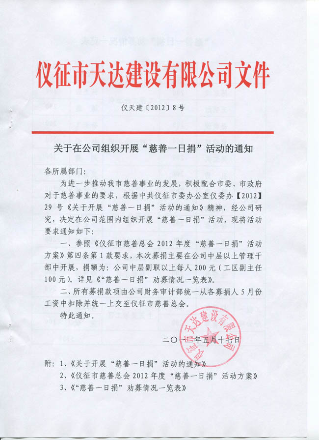 關(guān)于在公司組織開展“慈善一日捐”活動的通知