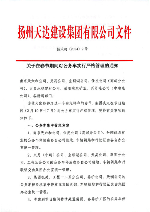關(guān)于在2024年春節(jié)期間對(duì)公務(wù)車實(shí)行嚴(yán)格管理的通知