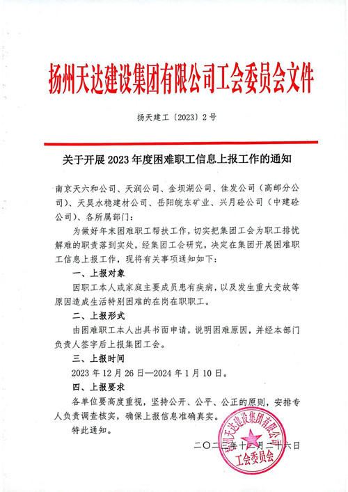 關(guān)于開展2023年度困難職工信息上報(bào)工作的通知