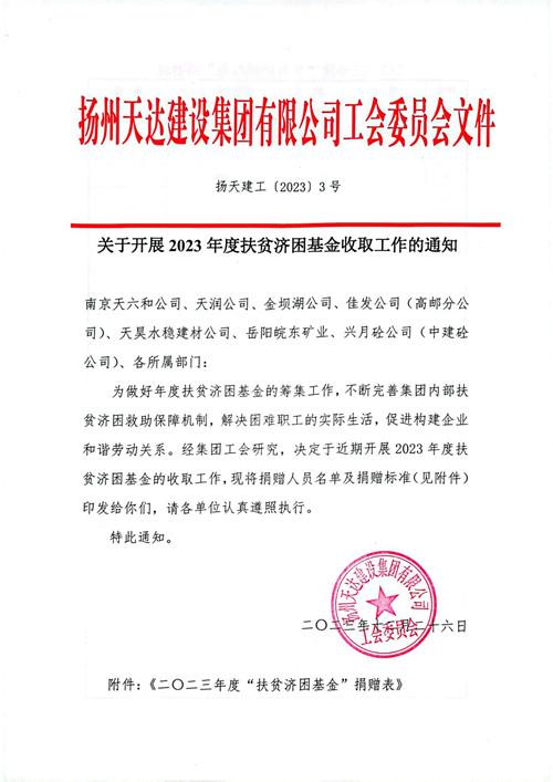 關(guān)于開展2023年度扶貧濟(jì)困基金收取工作的通知