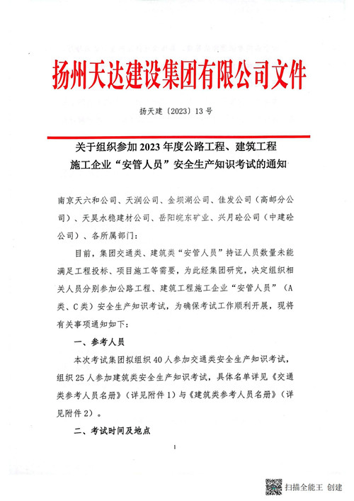 關(guān)于組織參加2023年度公路工程、建筑工程施工企業(yè)“安管人員”安全生產(chǎn)知識考試的通知