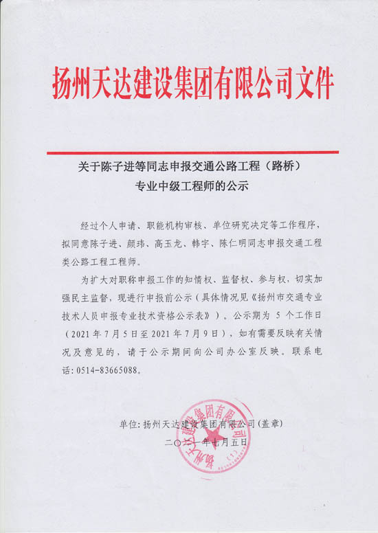 關(guān)于陳子進(jìn)等同志申報交通公路工程(路橋)專業(yè)中級工程師的公示