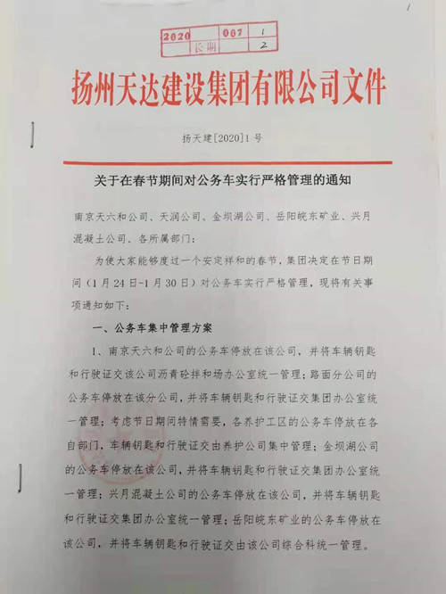 關(guān)于在2020年春節(jié)期間對公務(wù)車實行嚴(yán)格管理的通知