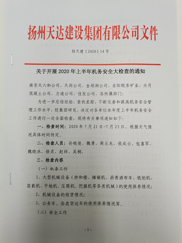 關(guān)于開展20202年上半年機(jī)務(wù)安全大檢查的通知