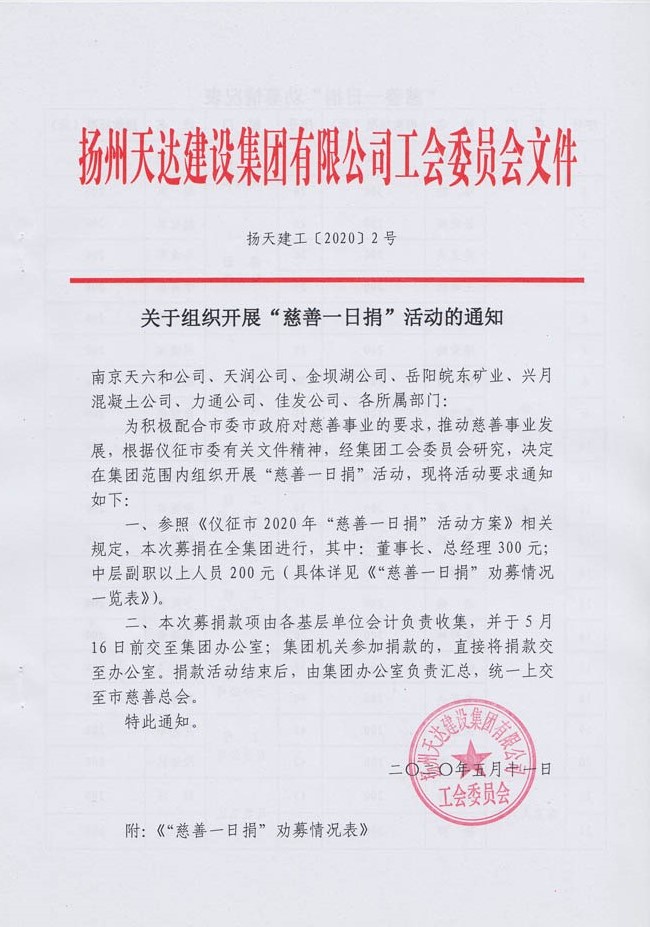 關(guān)于組織開展“慈善一日捐”活動的通知