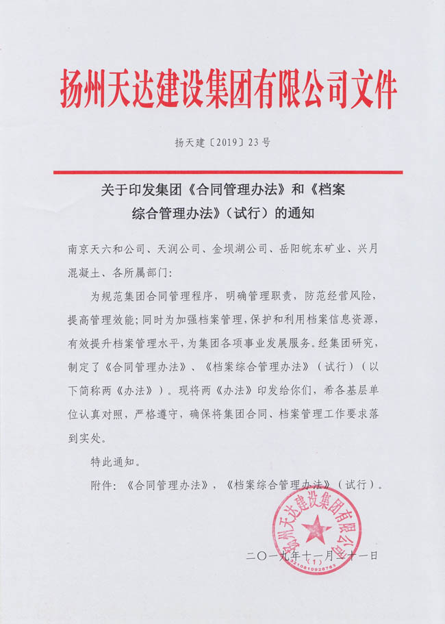 關(guān)于印發(fā)集團(tuán)《合同管理辦法》和《檔案綜合管理辦法(試行)》的通知
