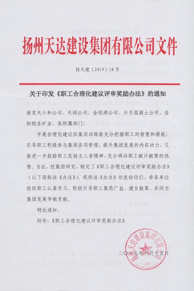 關(guān)于印發(fā)《職工合理化建議評審獎勵辦法》的通知