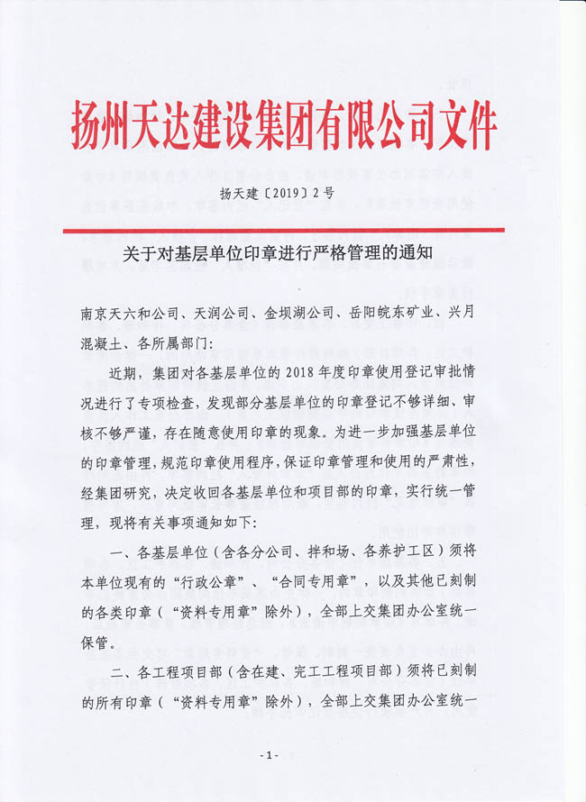 關(guān)于對基層單位印章進(jìn)行嚴(yán)格管理的通知