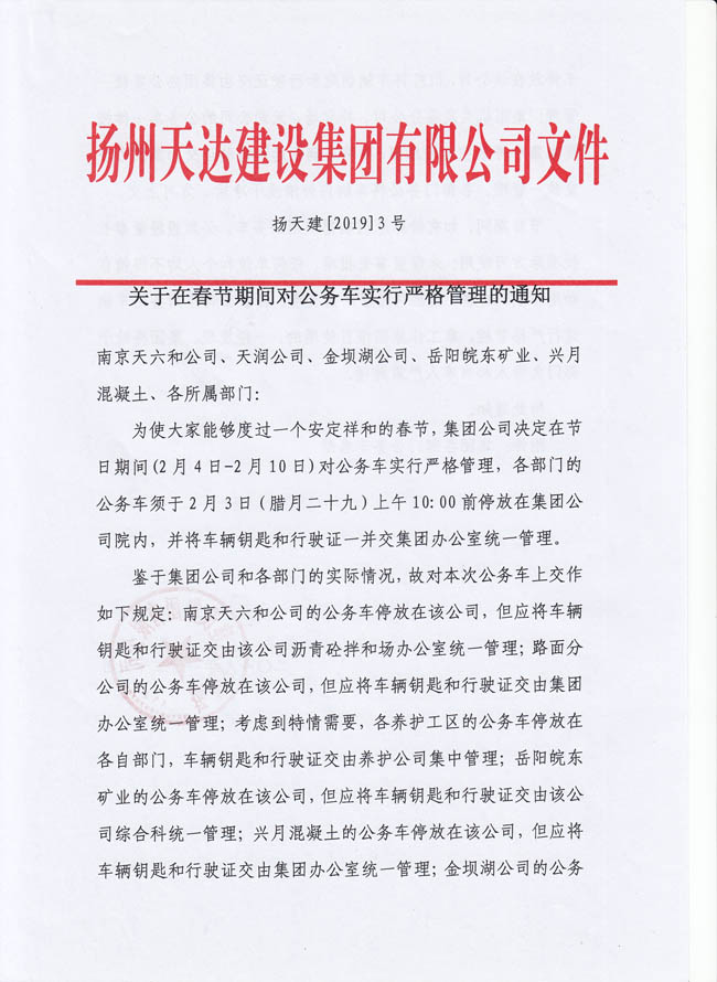 關(guān)于在春節(jié)期間對公務(wù)車實(shí)行嚴(yán)格管理的通知