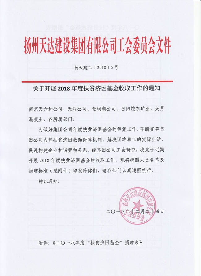 關(guān)于開(kāi)展2018年度扶貧濟(jì)困基金收取工作的通知