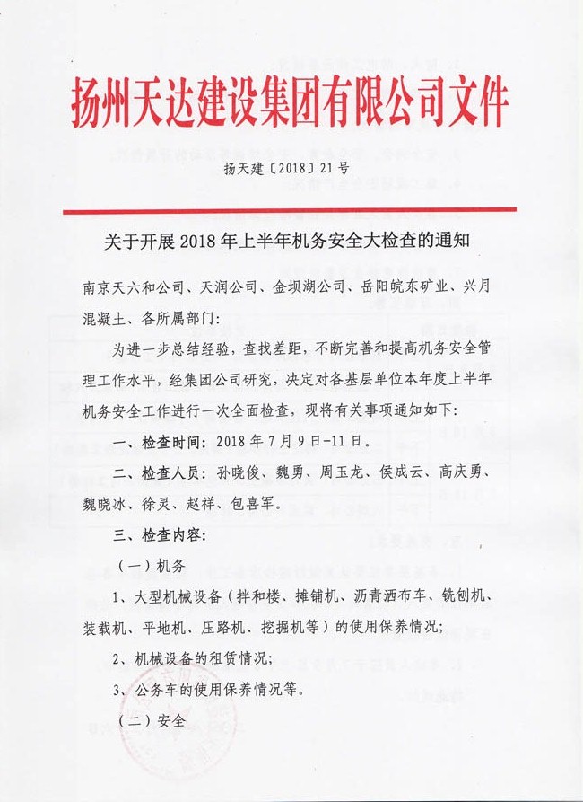 關(guān)于開展2018年上半年機(jī)務(wù)安全大檢查的通知