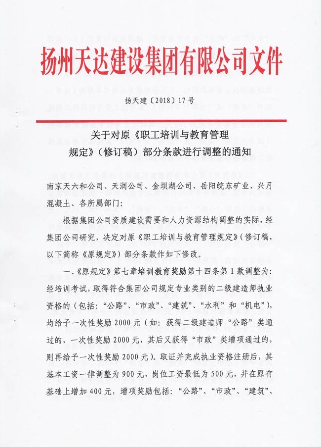 關于對原《職工培訓與教育管理規(guī)定》(修訂稿)部分條款進行調整的通知