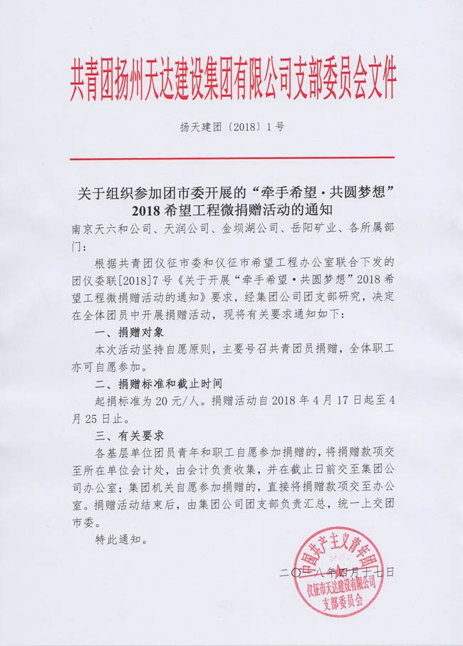 關(guān)于組織參加團(tuán)市委開展的“牽手希望 共圓夢想”2018希望工程微捐贈(zèng)活動(dòng)的通知