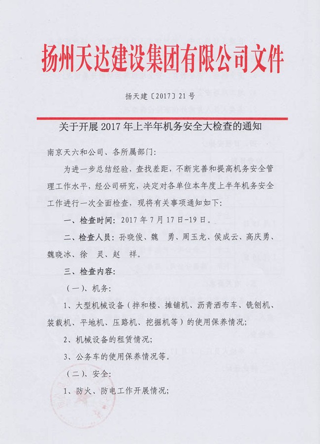 關(guān)于開展2017年上半年機務(wù)安全大檢查的通知