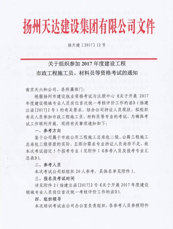 關(guān)于組織參加2017年度建設(shè)工程市政工程施工員、材料員等資格考試的通知