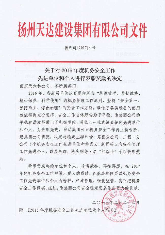 關(guān)于對2016年度機(jī)務(wù)安全工作先進(jìn)單位和個人進(jìn)行表彰獎勵的決定