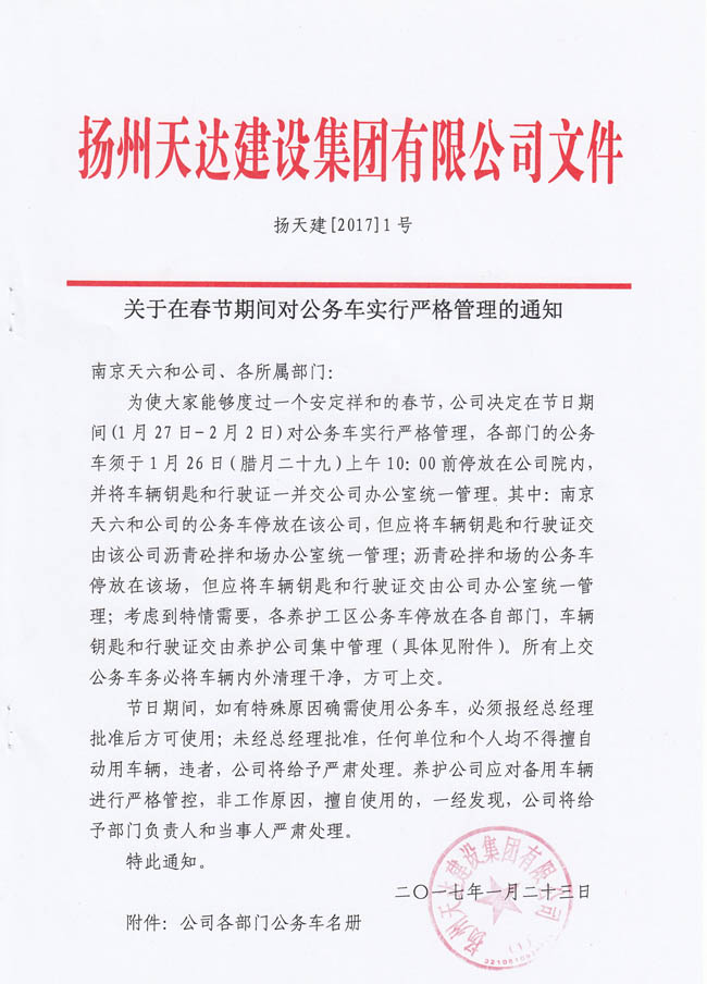 關(guān)于在春節(jié)期間對(duì)公務(wù)車實(shí)行嚴(yán)格管理的通知