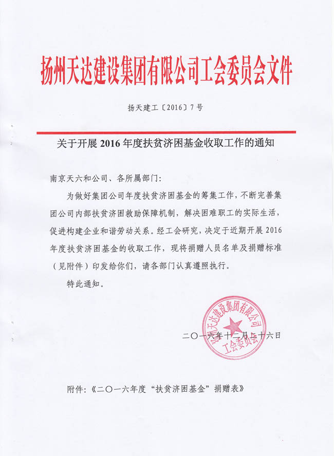 關于開展2016年度扶貧濟困基金收取工作的通知