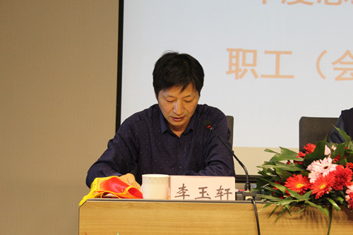 圖為總工室顧問王明紅宣讀2023年度表彰獎勵決定