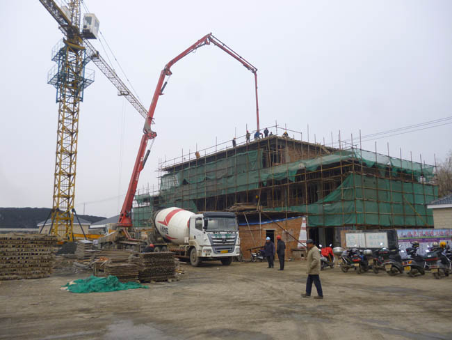 圖為正在進(jìn)行封頂施工的宿舍樓